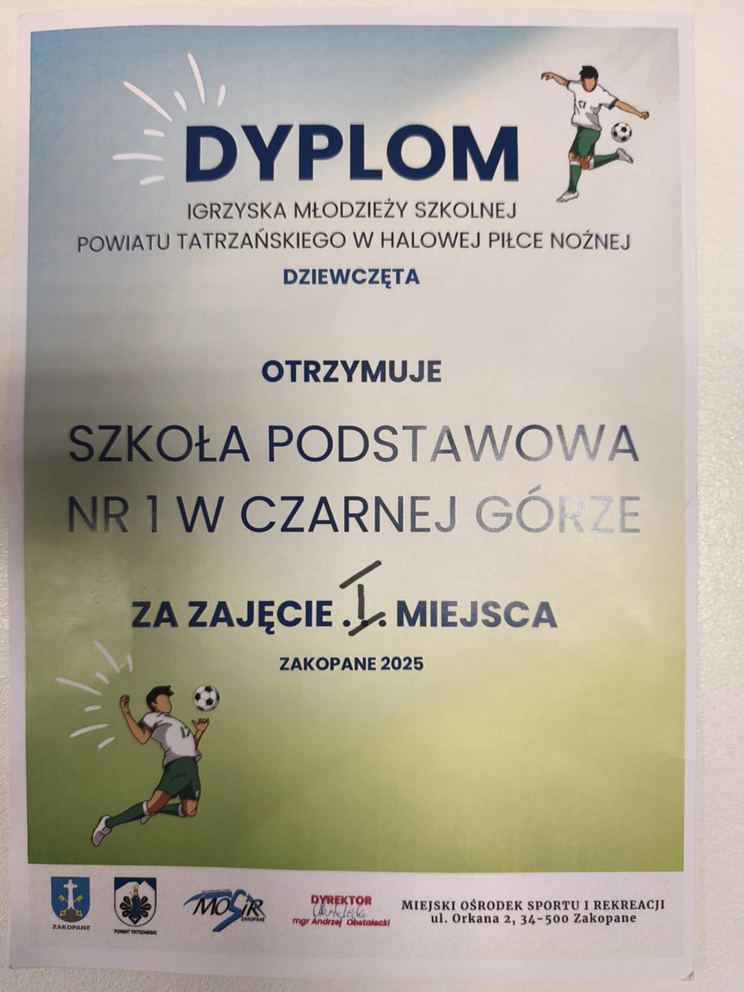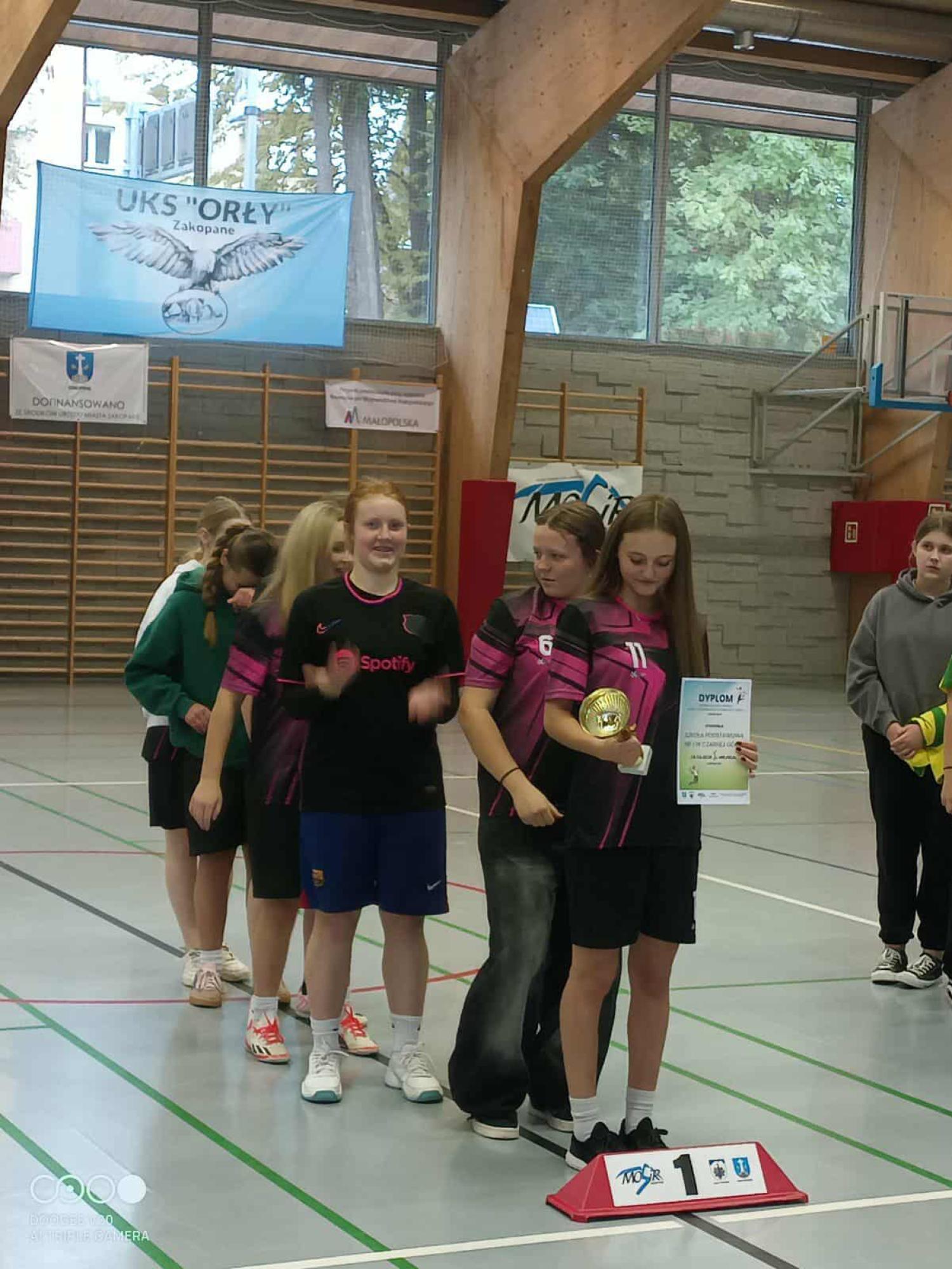17 października 2025 r. w Zakopanem odbyły się Powiatowe Mistrzostwa w Piłce Nożnej Halowej. Drużyna naszych dziewcząt po wygranych eliminacjach gminnych wspaniale zaprezentowała Gminę Bukowina Tatrzańska na hali w Zakopanem . Dziewczyny wygrały wszystkie mecze i w ogólnej klasyfikacji zajęły 1 miejsce w powiecie.