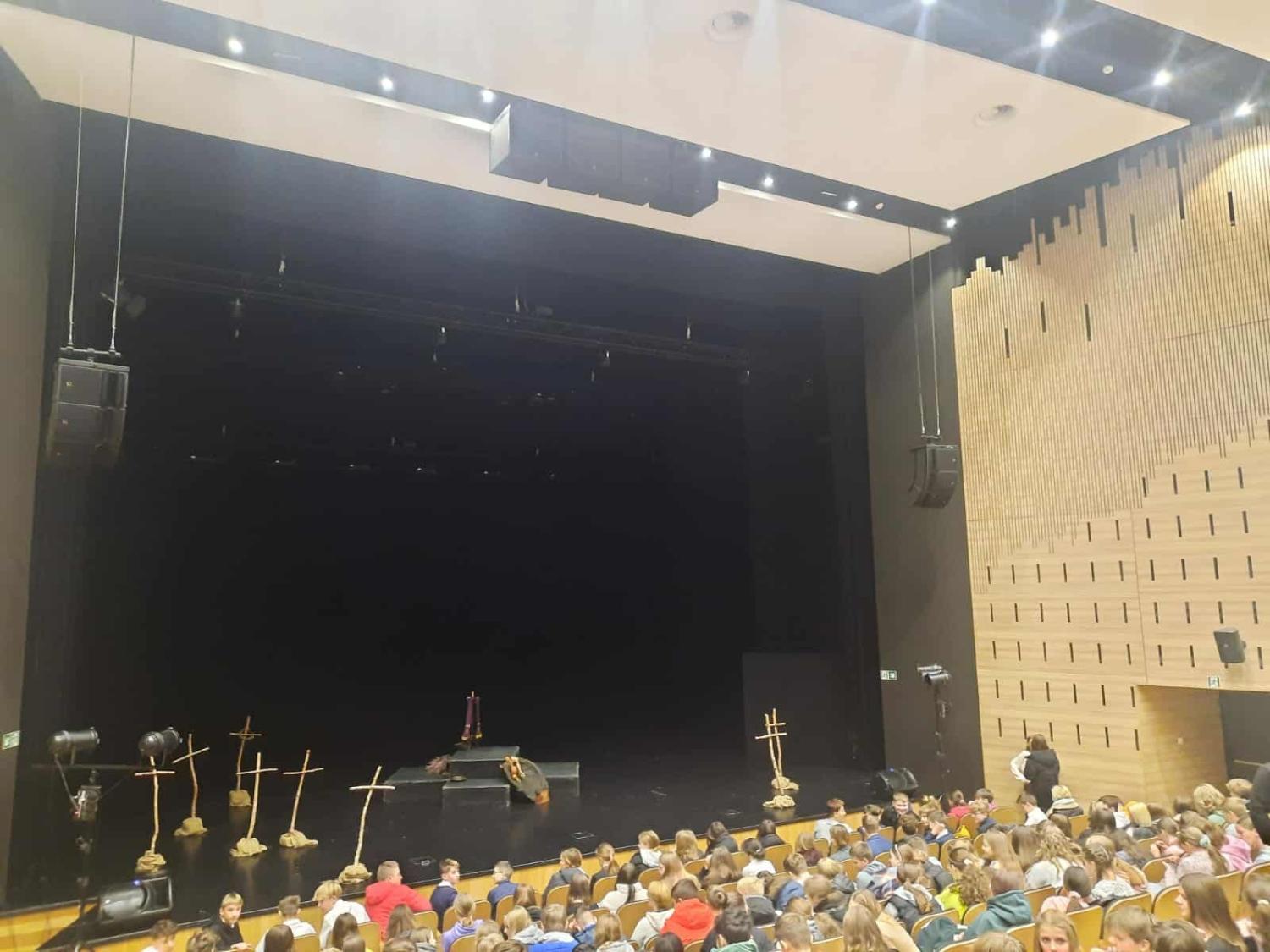 Uczniowie klasy VIII uczestniczyli w przedstawieniu teatralnym „Dziady część II” Adama Mickiewicza. Spektakl odbył się w MCK w Nowym Targu i stanowił ciekawą lekcję literatury w praktyce. Przedstawienie wprowadziło uczniów w świat dawnych obrzędów ludowych oraz ukazało motywy zaduszne i moralne zawarte w utworze. Młodzież mogła zobaczyć, jak aktorzy interpretują sceny z duchami lekkimi, ciężkimi i pośrednimi, a także jak scenografia i muzyka budują nastrój tajemniczości i grozy. Uczniowie z zainteresowaniem śledzili przebieg spektaklu, porównując go z tekstem poznanym na lekcjach języka polskiego. Udział w przedstawieniu pomógł im lepiej zrozumieć przesłanie utworu oraz znaczenie tradycji i wiary w życiu człowieka. Wyjście do teatru było również okazją do wspólnego spędzenia czasu i rozwijania wrażliwości artystycznej. Udział w przedstawieniu był wartościowym doświadczeniem edukacyjnym dla wszystkich uczniów.