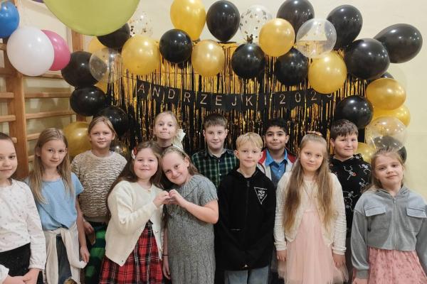 Tego dnia szkolna sala gimnastyczna zamieniła się w miejsce wróżb i niespodzianek. Uczniowie klasy 7 przygotowali wyjątkową atrakcję – wróżby z dymiących naczyń chemicznych, które wzbudziły ogromne zainteresowanie młodszych dzieci. Klasa 8 zadbała o tradycyjny klimat andrzejek, prowadząc znane i lubiane wróżby oraz zabawy. Wieczorem natomiast bawili się i wróżyli sobie starsi uczniowie z klas 4–8, którzy także mieli okazję poczuć andrzejkową magię i spędzić czas w radosnej atmosferze