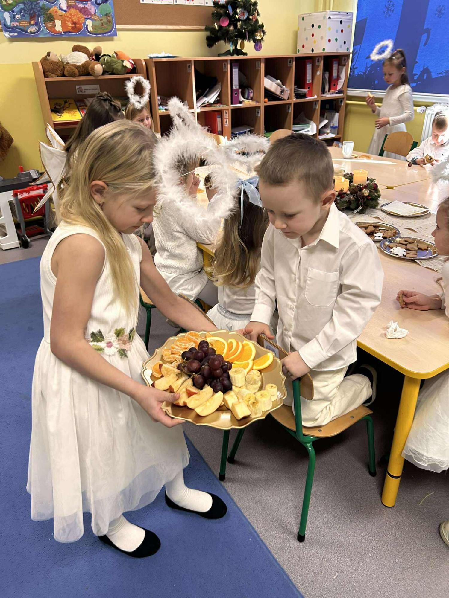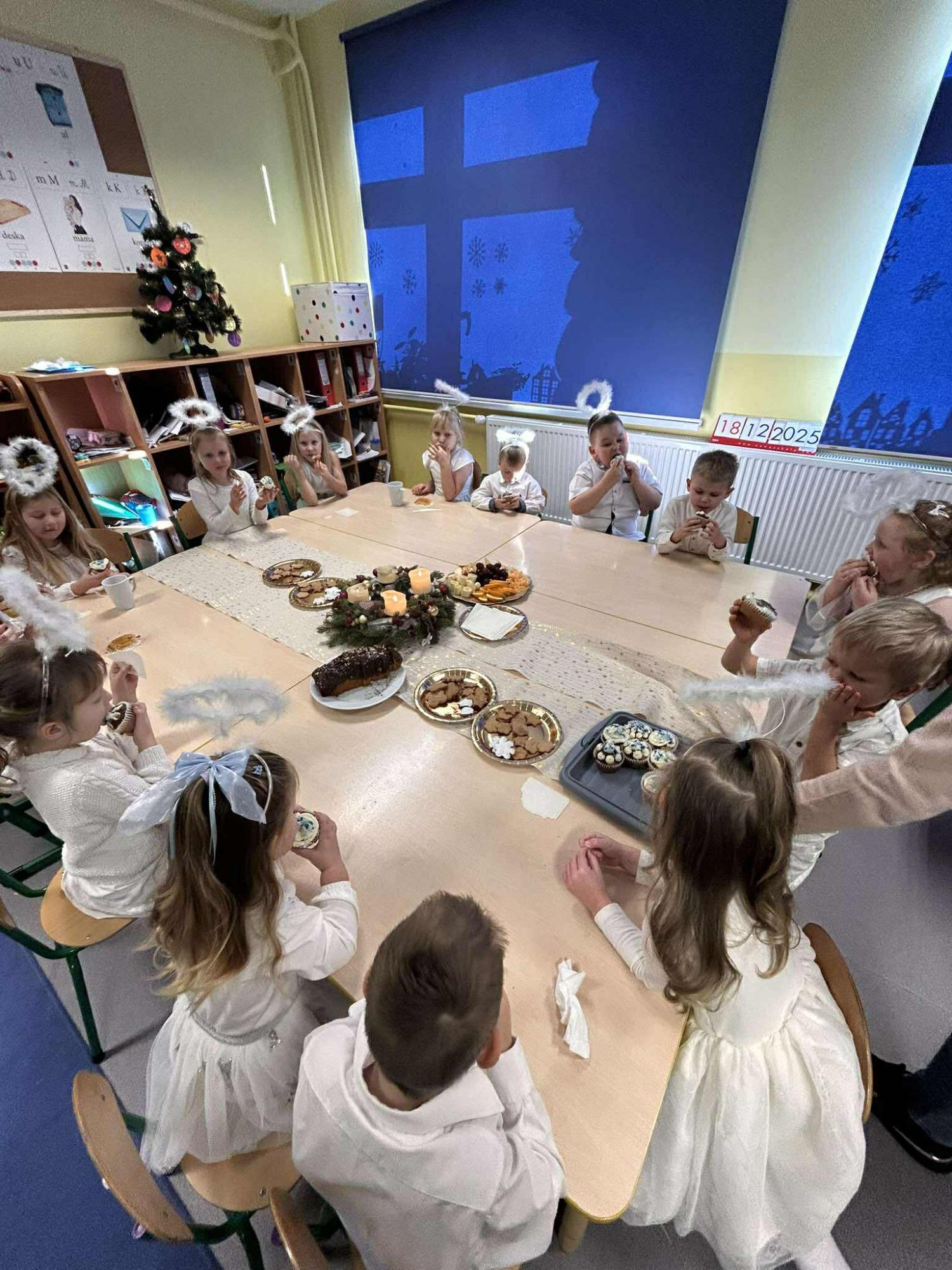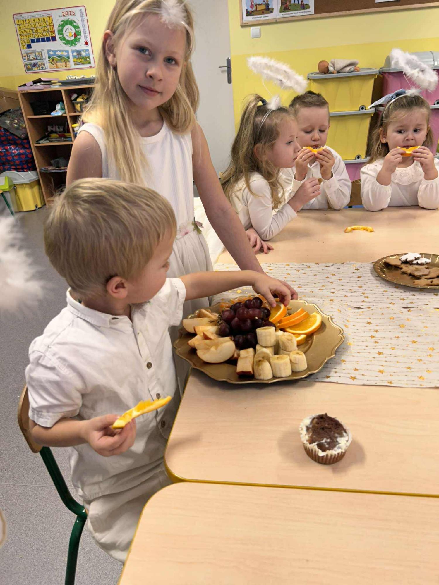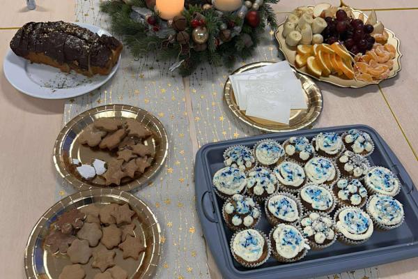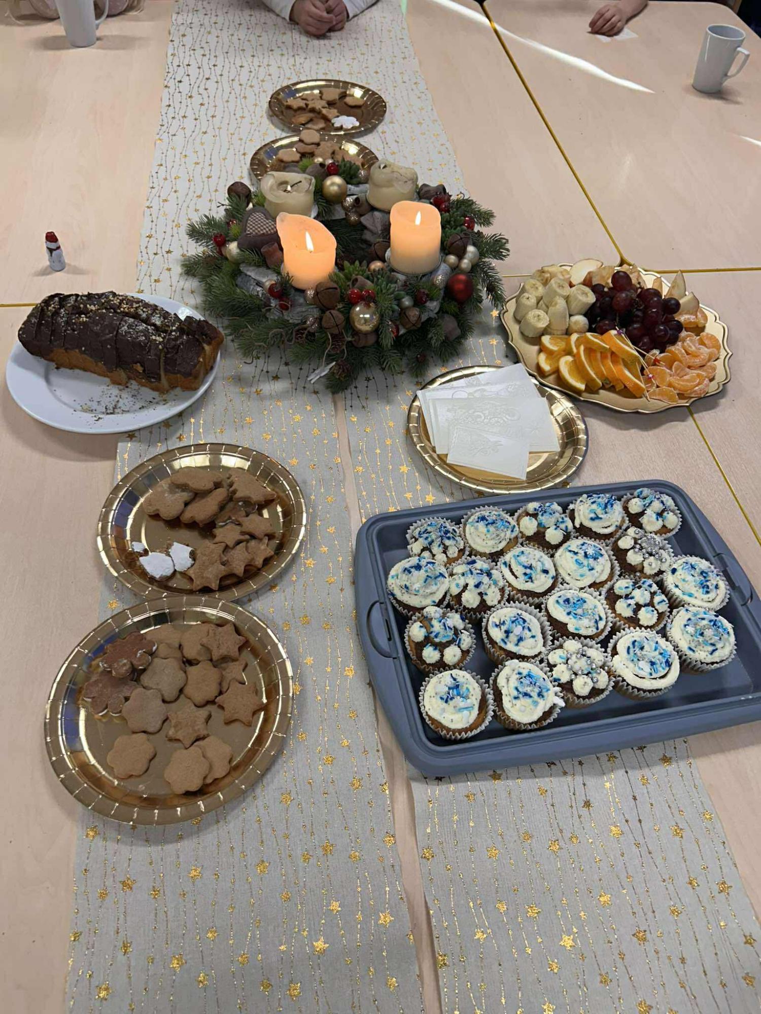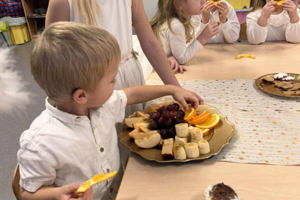 W świątecznej atmosferze odbył się również bożonarodzeniowy poczęstunek wśród przedszkolaków. Dzieci wspólnie zasiadły do stołu, pełnego świątecznych smakołyków, a wyjątkowym momentem było dzielenie się opłatkiem, składanie sobie życzeń oraz rozmowy pełne życzliwości i uśmiechu.