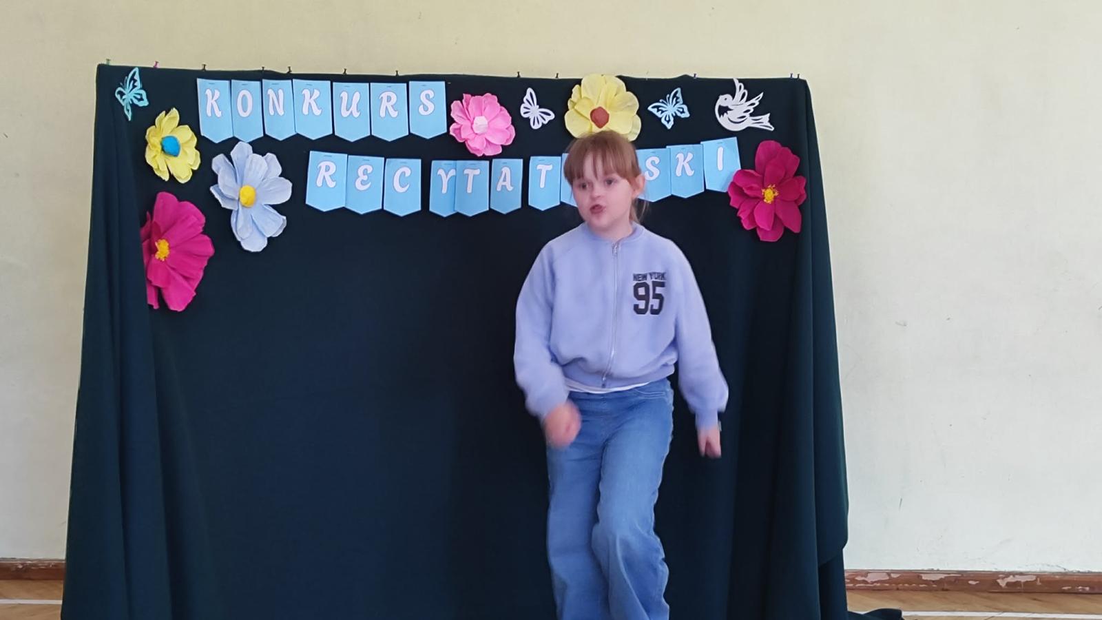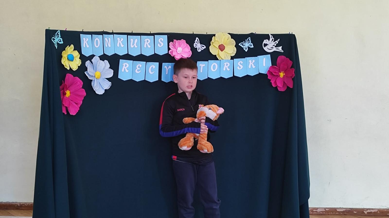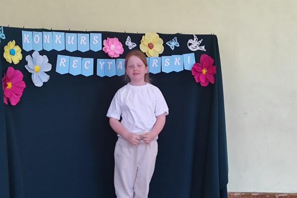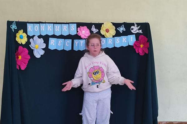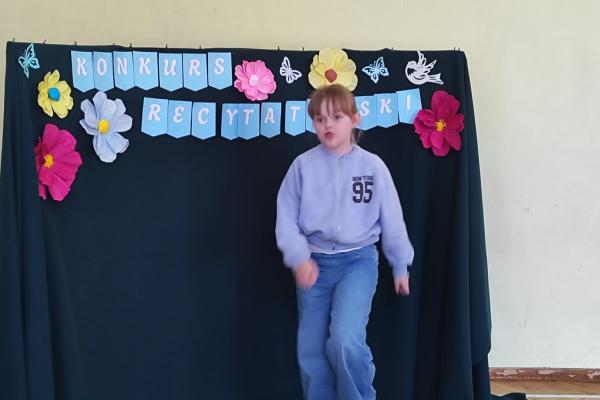 W naszej szkole odbył się Szkolny Etap Konkursu Recytatorskiego „Polscy poeci dzieciom”, skierowany do uczniów klas I–III. Celem konkursu było rozwijanie wrażliwości na piękno języka ojczystego, popularyzowanie poezji dziecięcej oraz doskonalenie umiejętności recytatorskich najmłodszych uczniów.