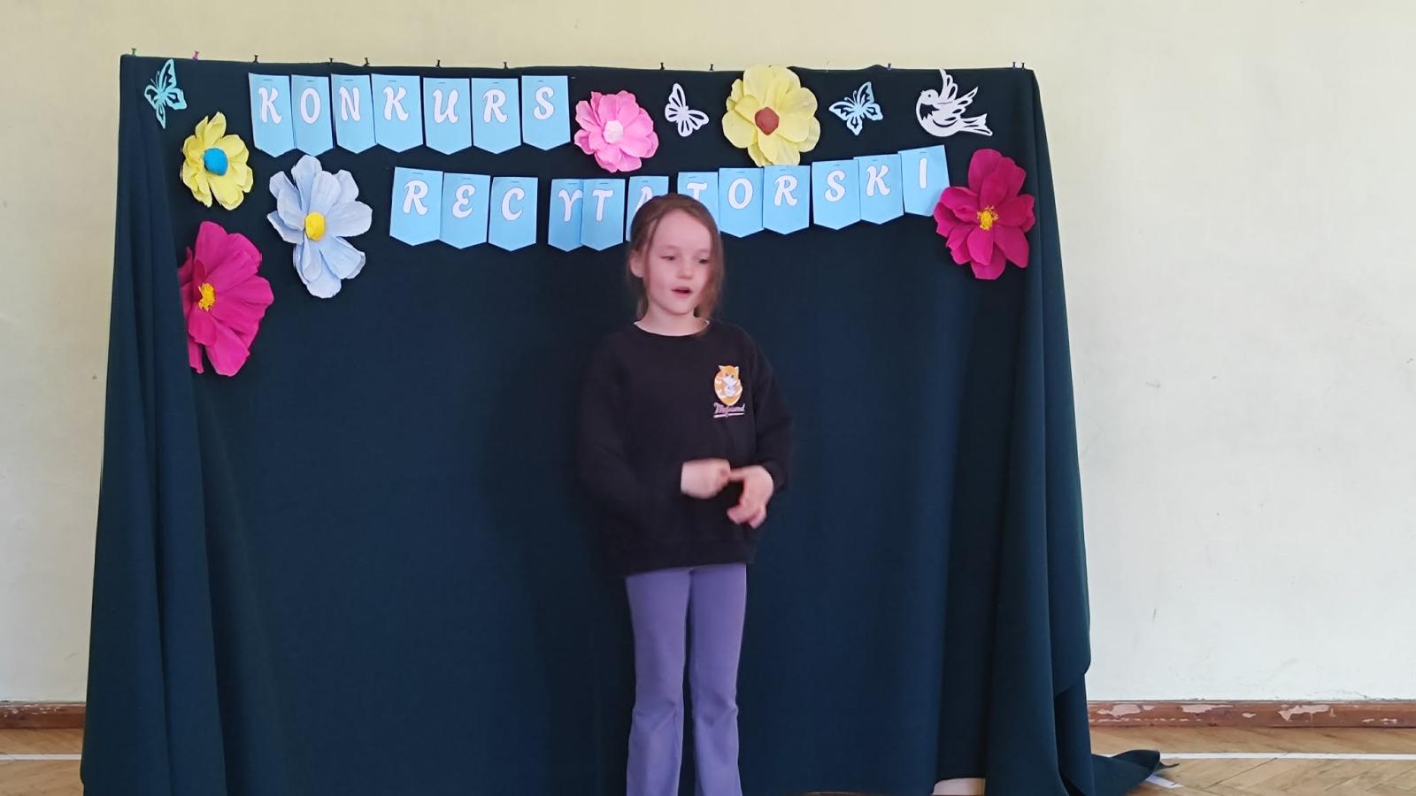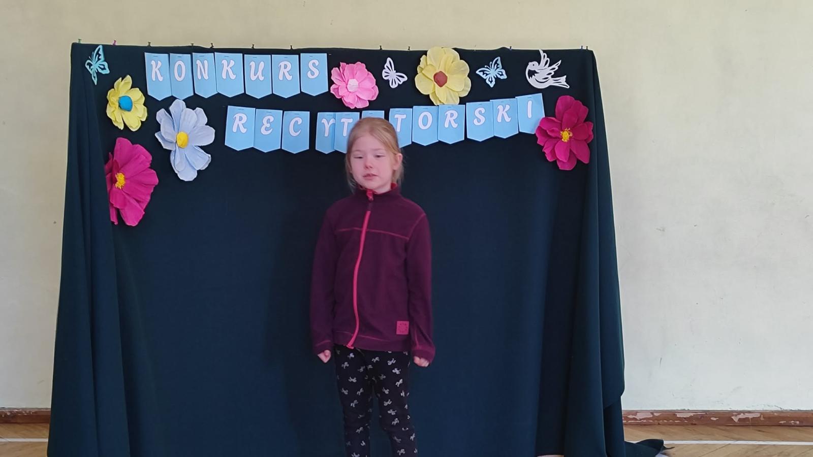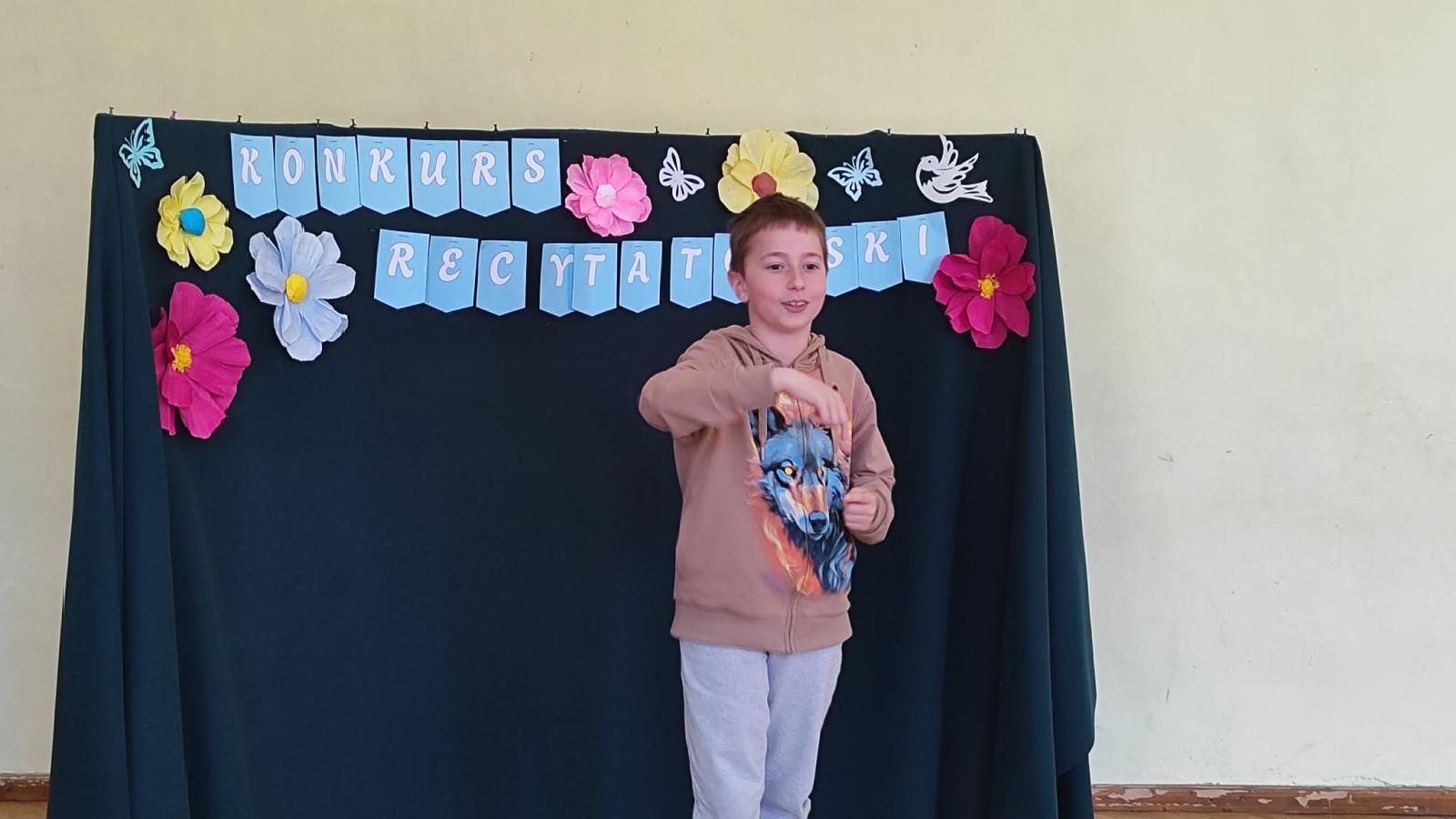 W naszej szkole odbył się Szkolny Etap Konkursu Recytatorskiego „Polscy poeci dzieciom”, skierowany do uczniów klas I–III. Celem konkursu było rozwijanie wrażliwości na piękno języka ojczystego, popularyzowanie poezji dziecięcej oraz doskonalenie umiejętności recytatorskich najmłodszych uczniów.